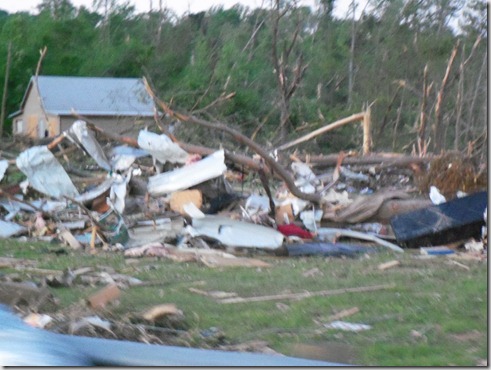 We closed our offices early Wednesday and as we were leaving we were all telling each other to “Be Safe”, take cover….be careful….I went home and cooked supper and was just tense….Cameron was at a friend’s house and they didn’t have a basement so I called him and told him to come home….we don’t have a basement either….I was watching the weather on the news and saw the massive monster ripping across Tuscaloosa and then Birmingham which is about 40 miles from me….